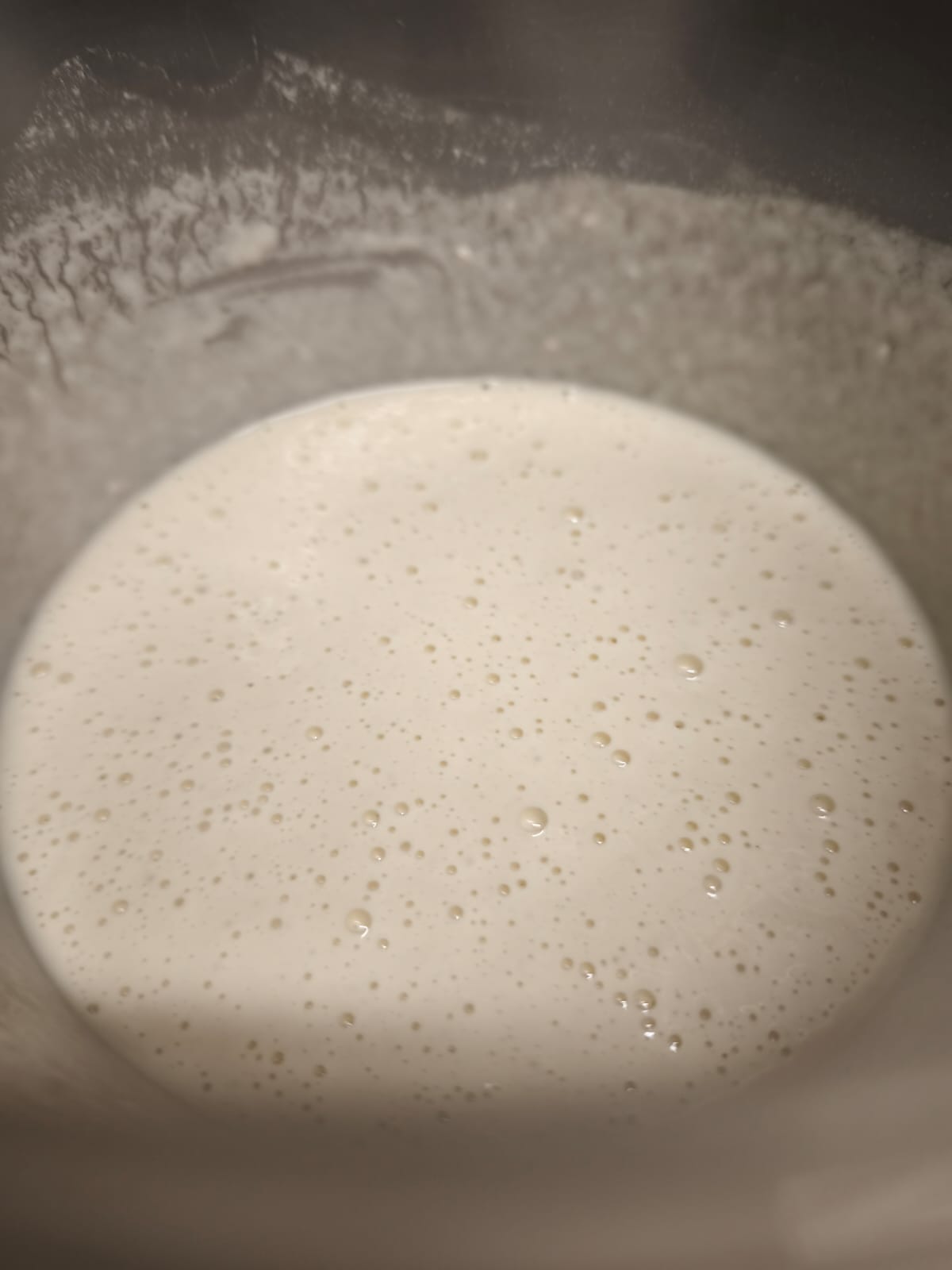 Die Zutaten für den Teig gut verühren, so das keine Klümpchen entstehen. Woe bereits erwähnt sollte der Teig dick und zäh sein. Wenn er zu flüssig ist, einfach mehr Mehl verwenden.